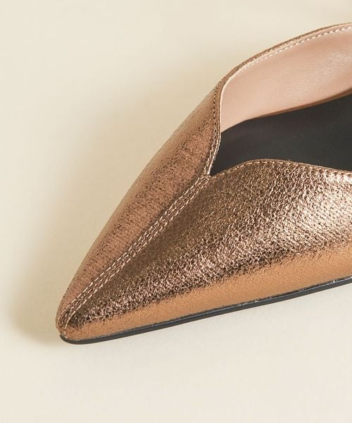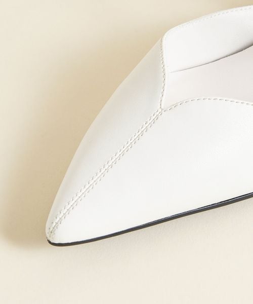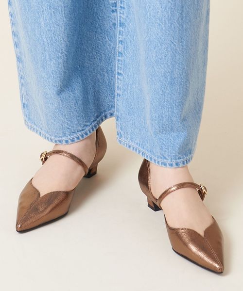 すっきりと見えるやや細身のポインテッドトゥと3.5cmのローヒールで全体のバランスを取り、フェミニンな雰囲気のなかにも大人っぽさを感じさせます。