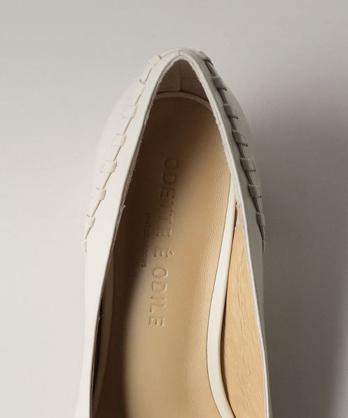 アッパーに三つ折りテープを手作業で縫い付けてつくった、クラフト感のあるデザイン。