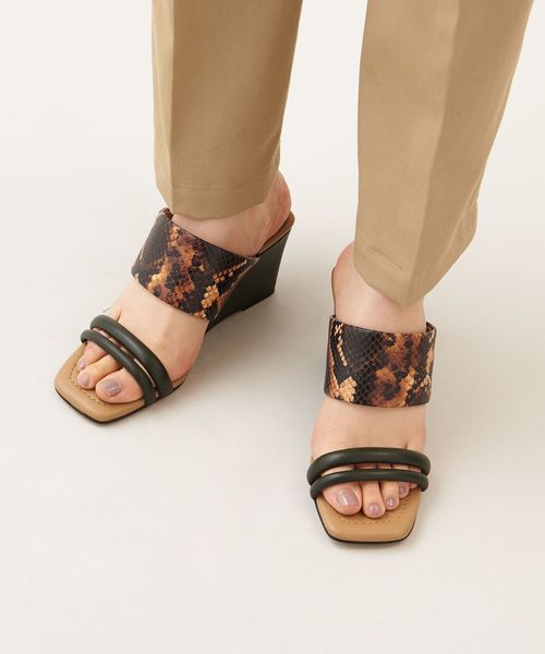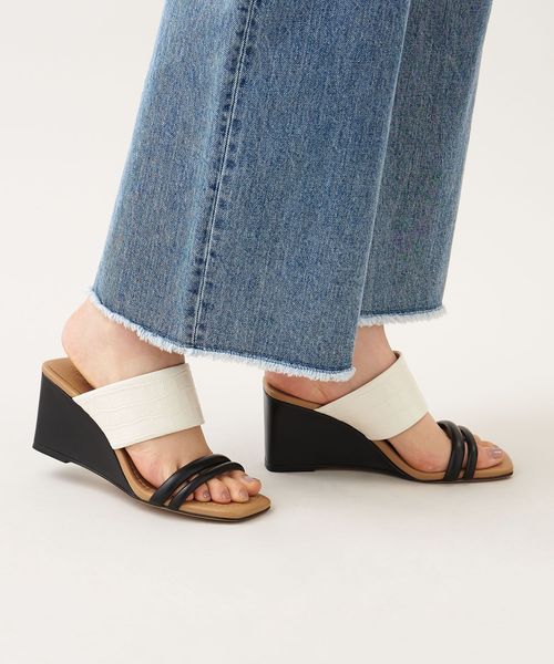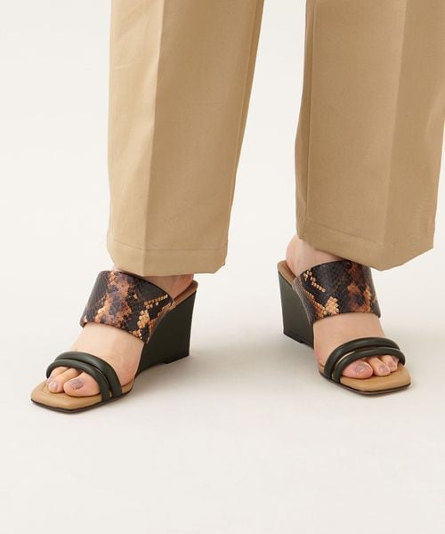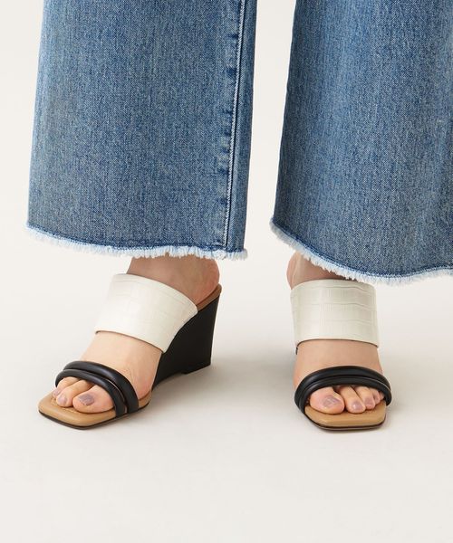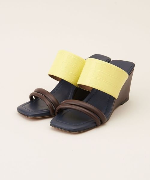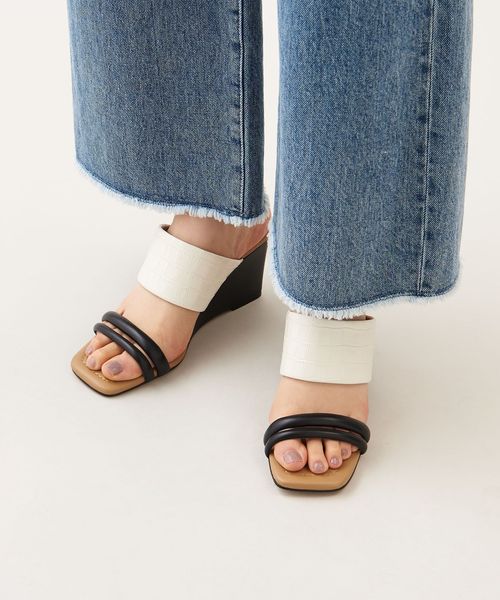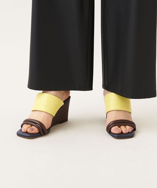ストレートラインでつくられたウェッジソールが新鮮なシルエット。