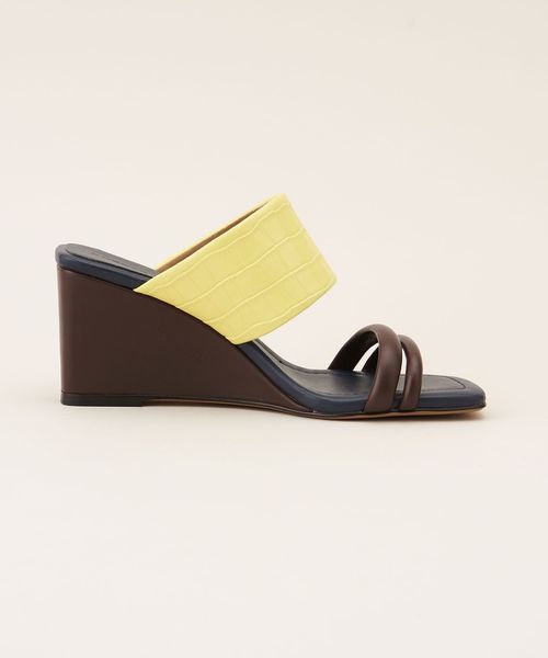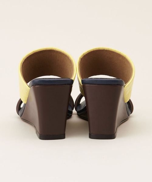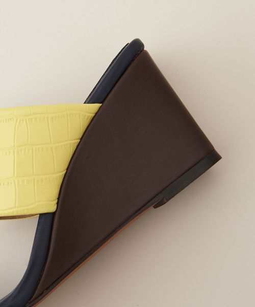 アッパーベルト、ウェッジソール、中底巻きのカラーや素材のコンビネーションが魅力的。