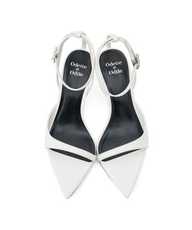 アッパーの細いベルトは流れるようなアシンメトリーのライン。
