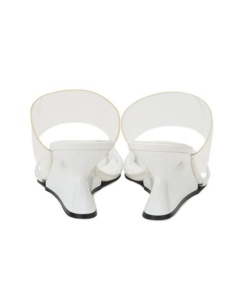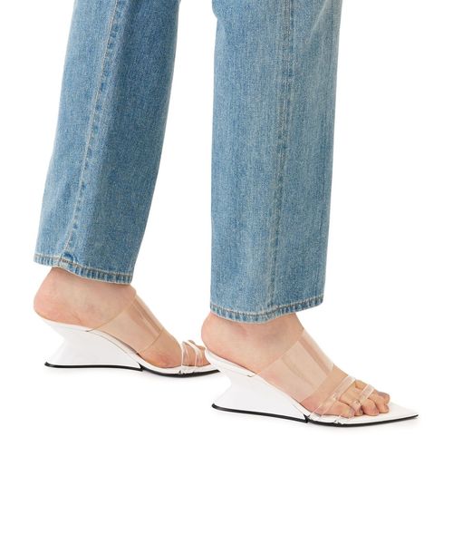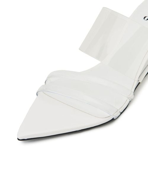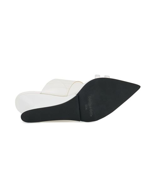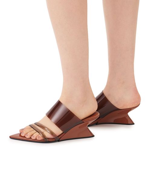 シャープなポインテッドトゥに変形ウェッジヒールを組み合わせ、モードな印象も演出します。