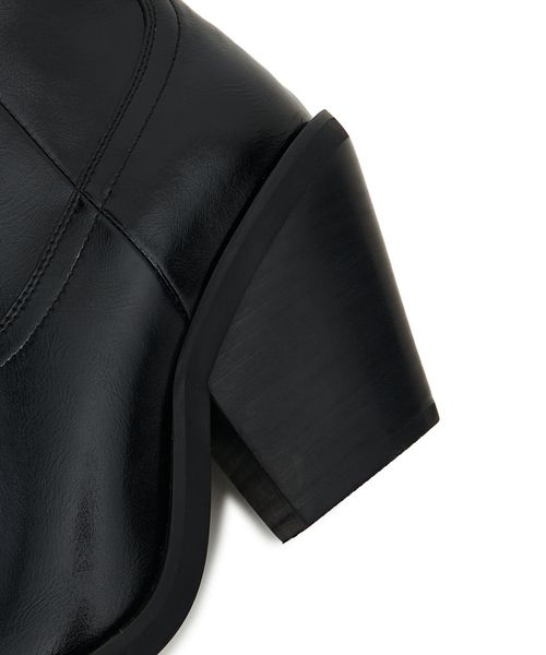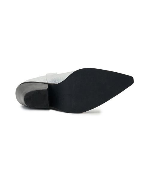 やや長めのポインテッドトゥで洗練されたシルエットと、存在感のある太ヒールや底周りがモードな雰囲気を漂わせる一足です。