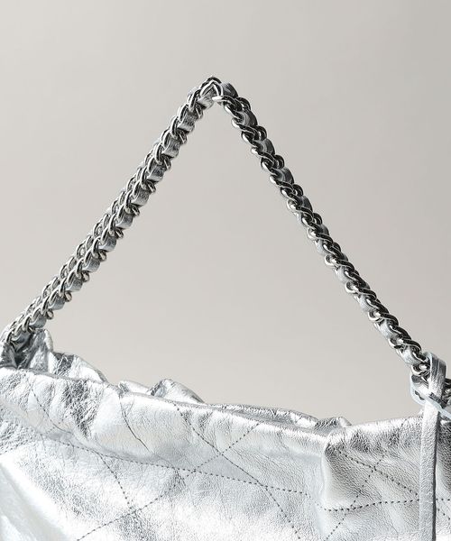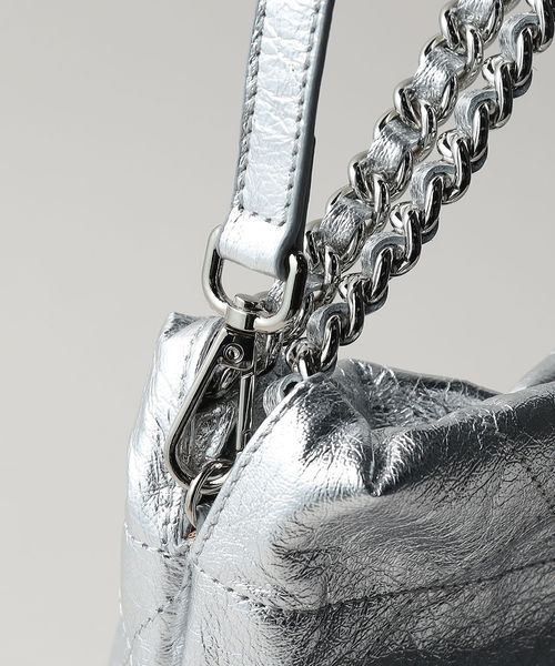 ダイヤモンドステッチのボディに、チェーンハンドルの組み合わせが美しいバッグ。