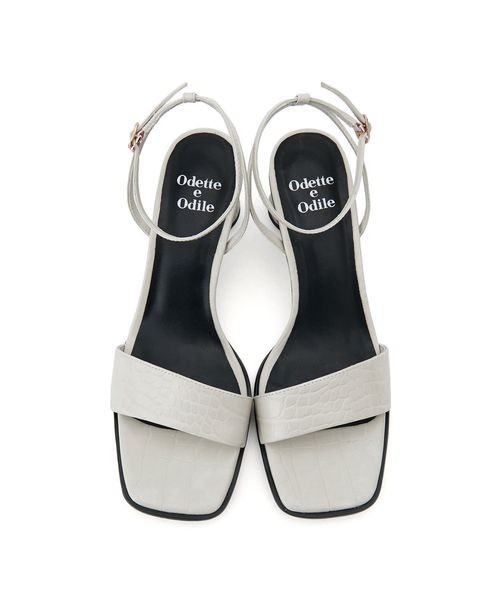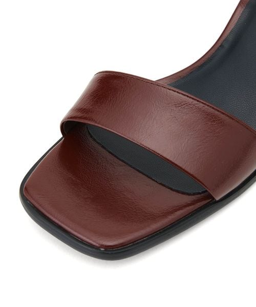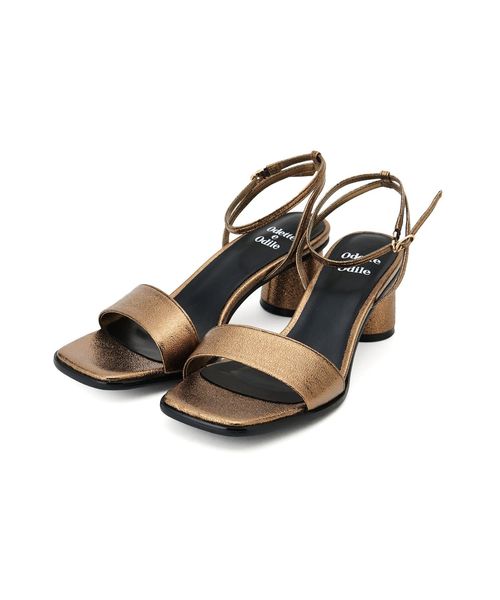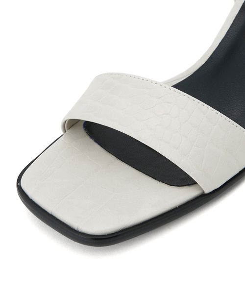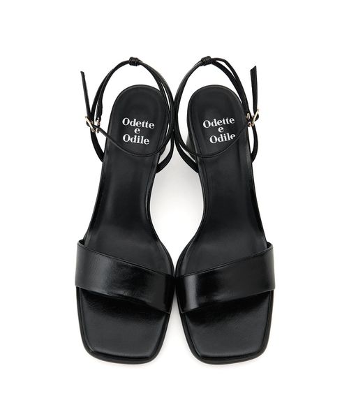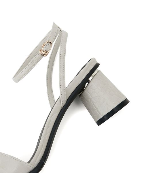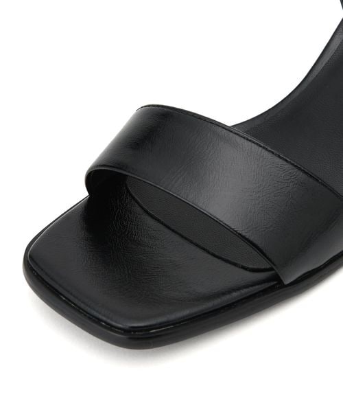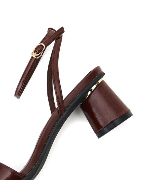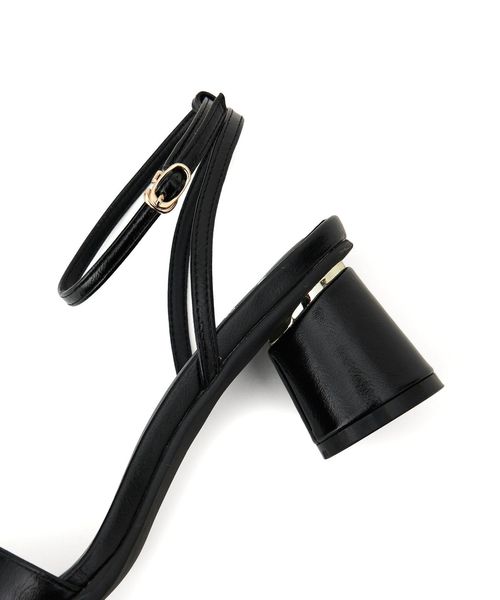 シンプルなストラップサンダルには円柱のフレアヒールを組み合わせて個性をプラス。