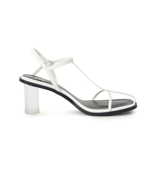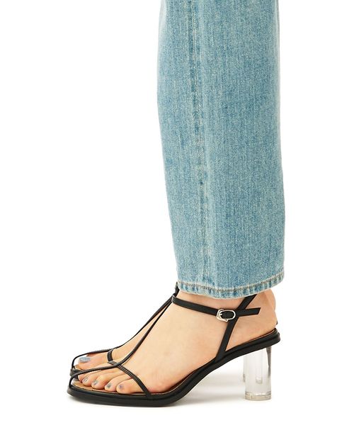 Tストラップとクリアヒールの組み合わせが新鮮なサンダル