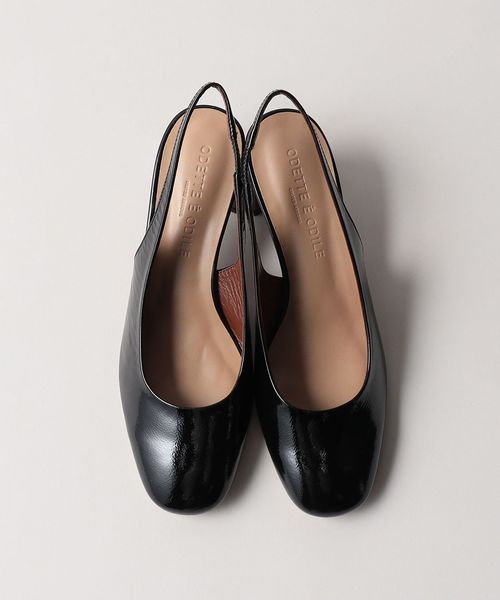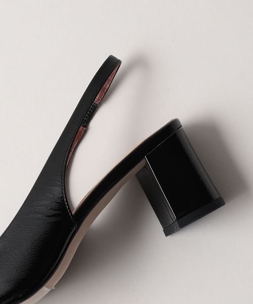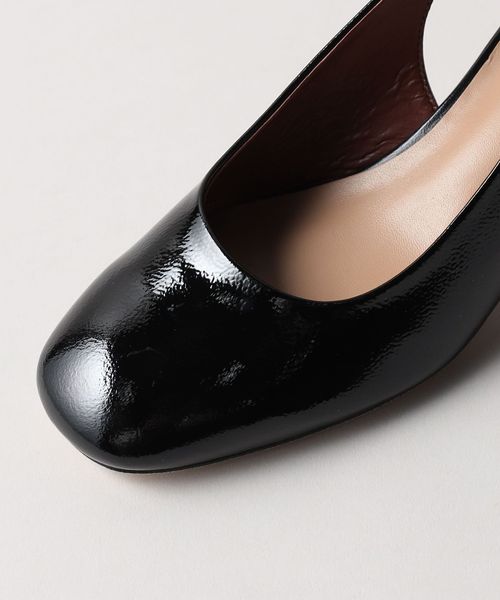 ブラックはアッパーにもヒール部分にもエナメル素材を使用。