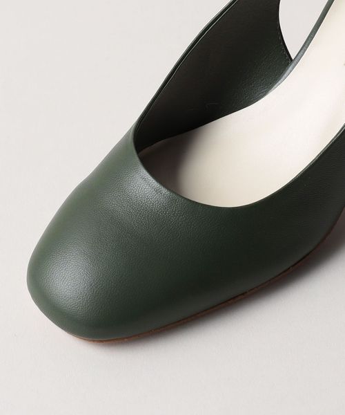 ラウンドスクエアのトゥ先が上品なバックベルトパンプス