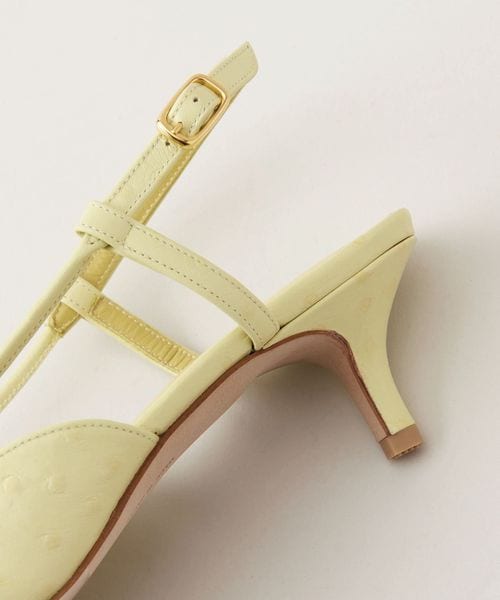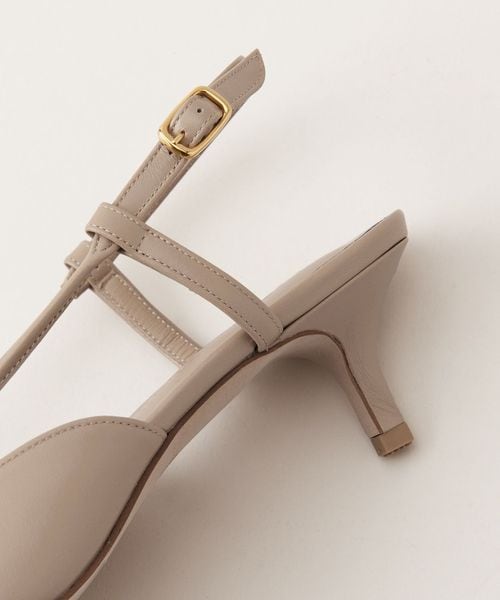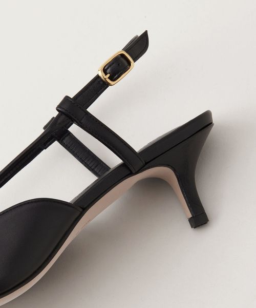 甲にかかるように通した細いストラップをバックベルトにしたデザイン。