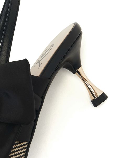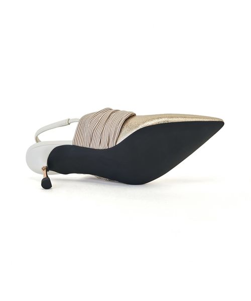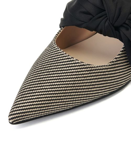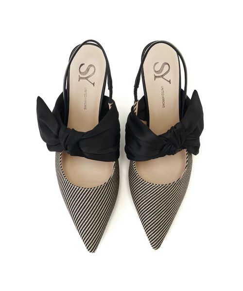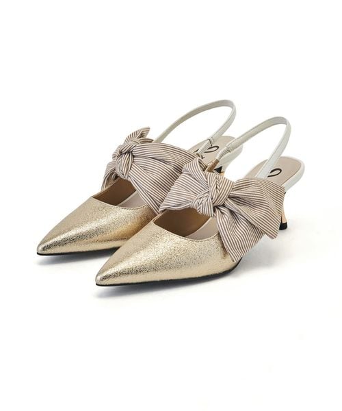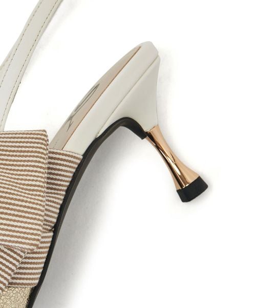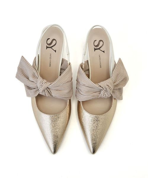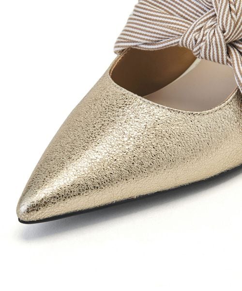 ブラックはスムースのアッパーにサテンのリボン、ゴールドはシボ感強めのメタリック素材のアッパーにストライプ柄の生地のリボン、その他1はブラックとベージュを編み込んだような生地のアッパーにサテンのリボンを組み合わせました。