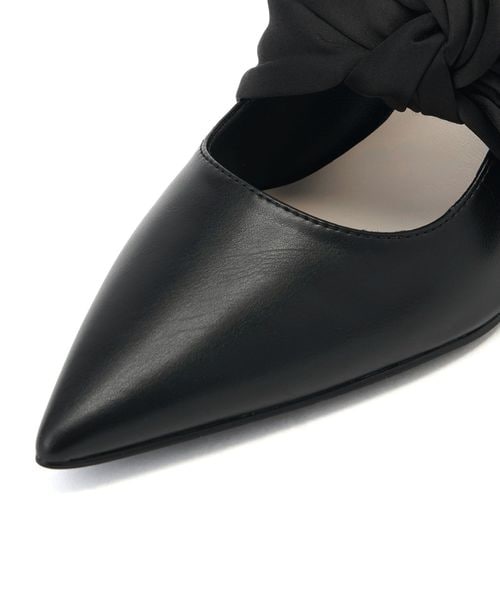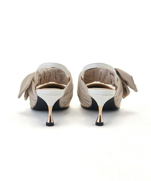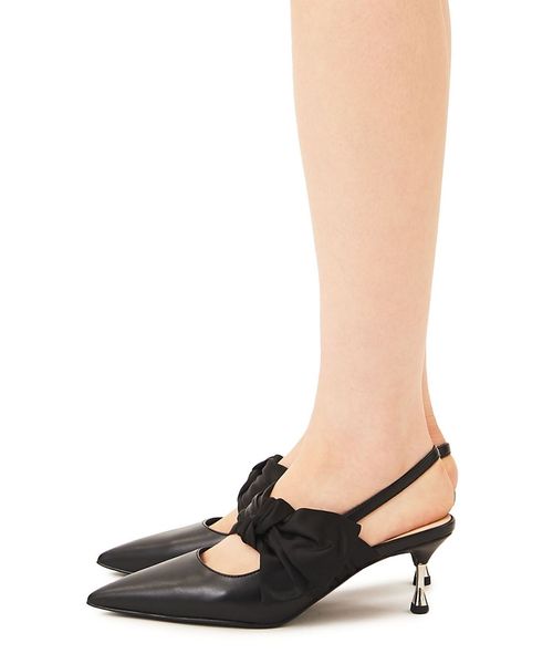 甲を覆う大きめサイズのリボンが存在感を放つ一足。