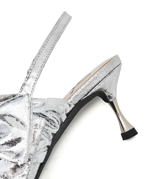 すっきりとしたポインテッドトゥのシルエットや、メタル金具を組み合わせた6cmヒールが上品さを漂わせます。