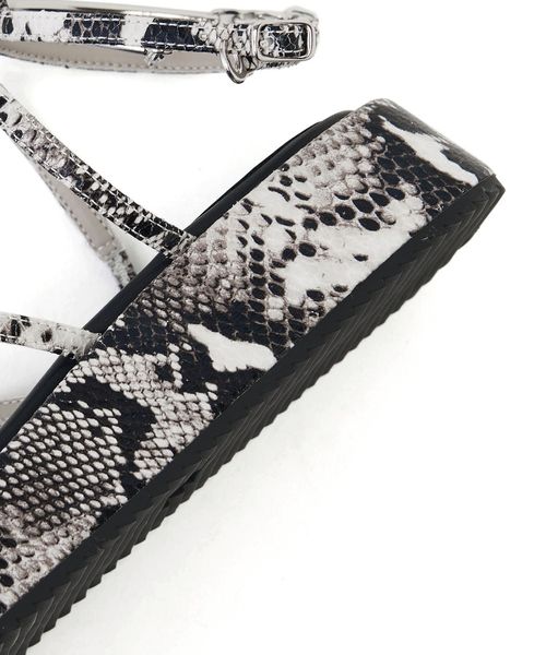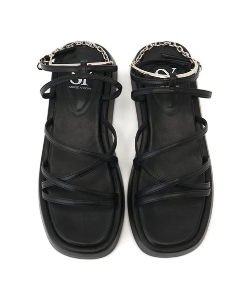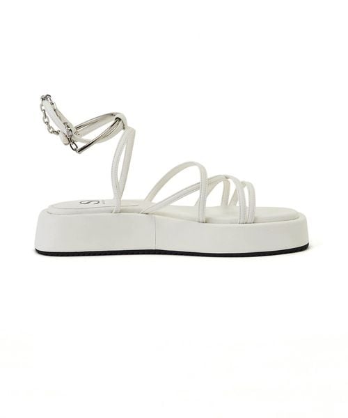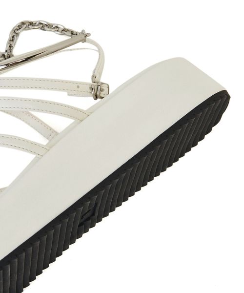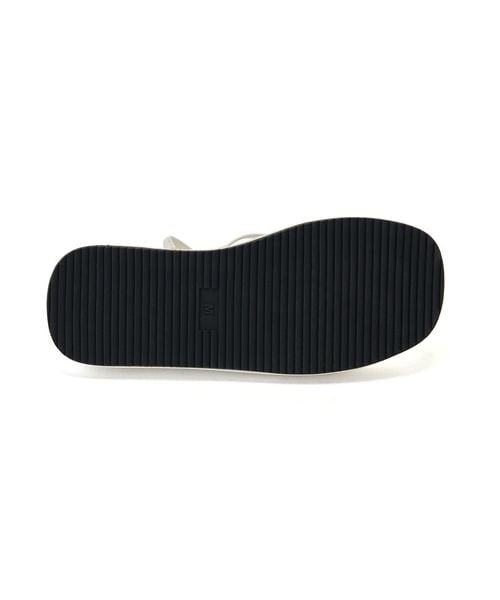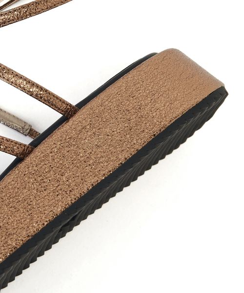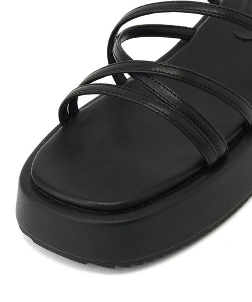 高低差のない3.5cmほどの厚底フラットソールに細いストラップデザインをのせた一足。