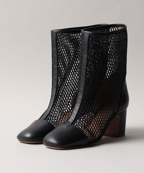大胆なメッシュの透け感がインパクトを放つショートブーツ。
