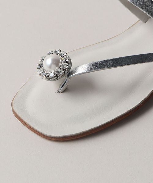フラワー型のビジューをあしらった別注サンダル。