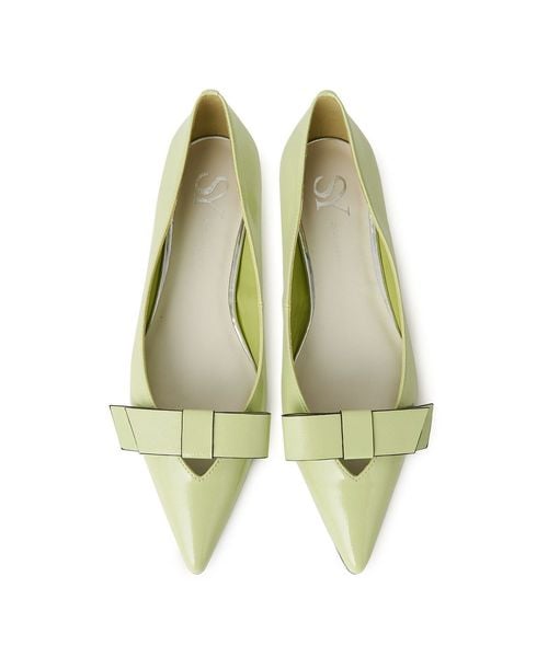 フラットなリボンが施されたフラットシューズ