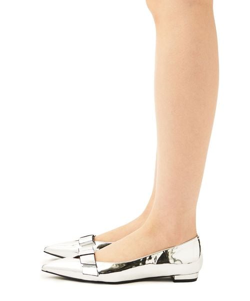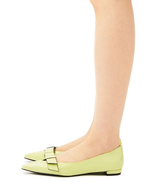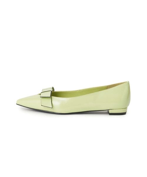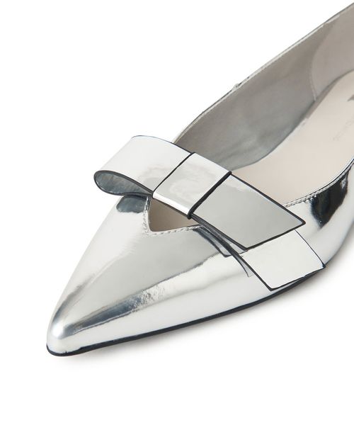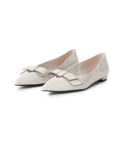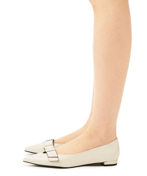 フラットなリボンが施されたフラットシューズ