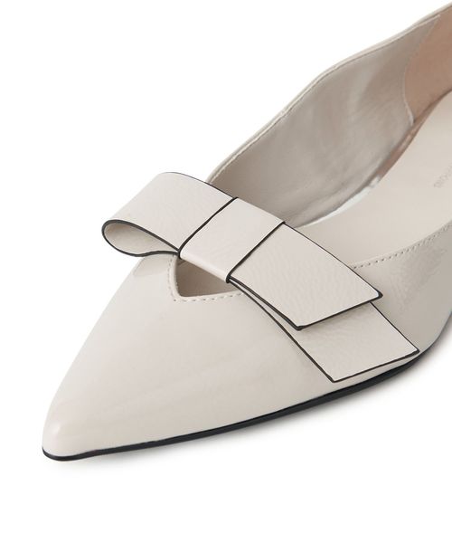 抜け感のあるVカットのアッパーに同色のリボンを施し、統一感を出しつつも、立体感をプラス。