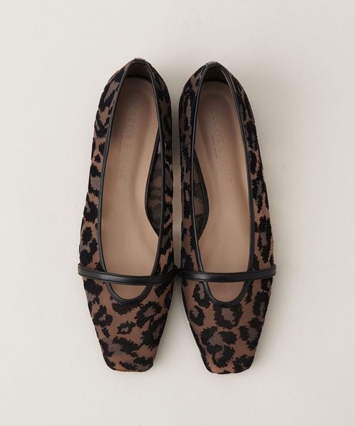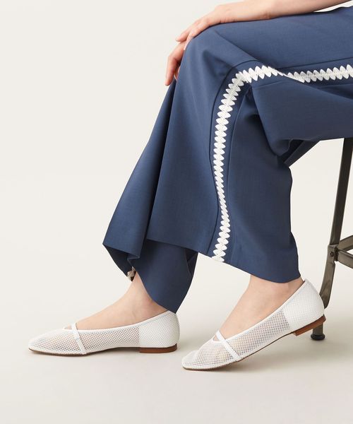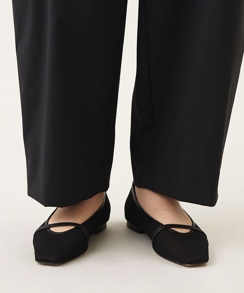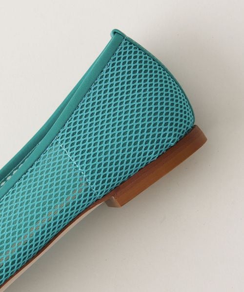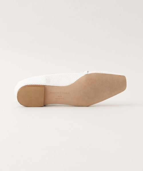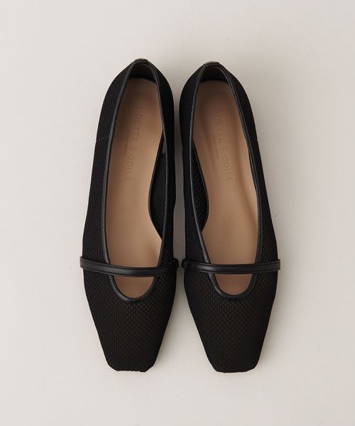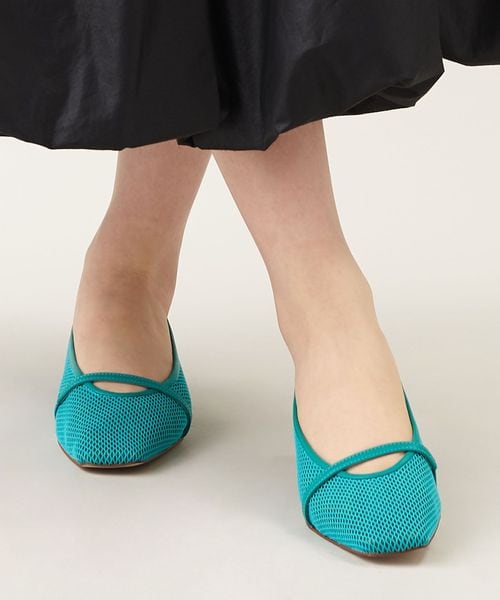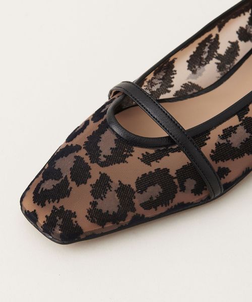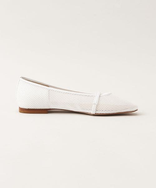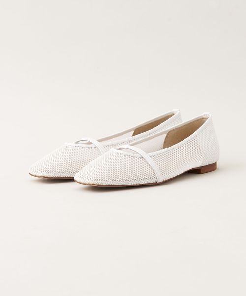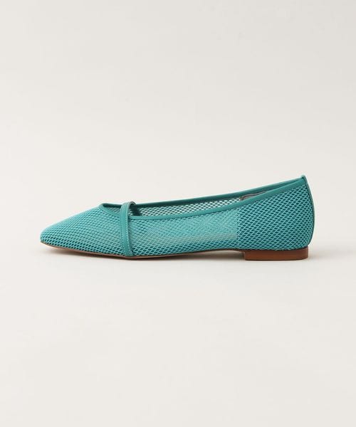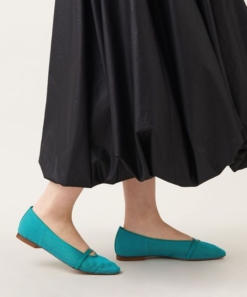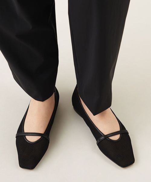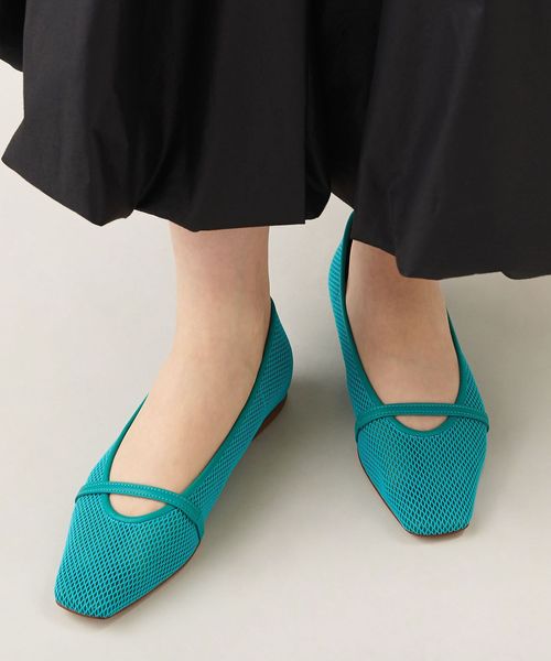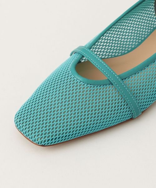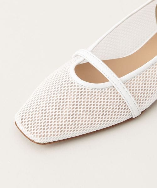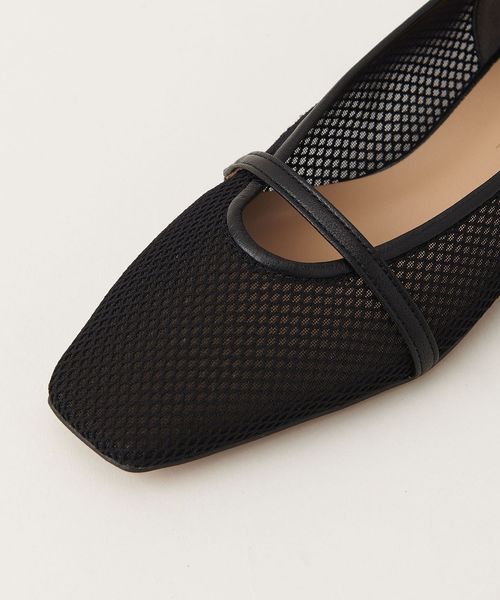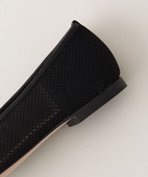 透け感のあるスクエアトゥのフラットシューズ