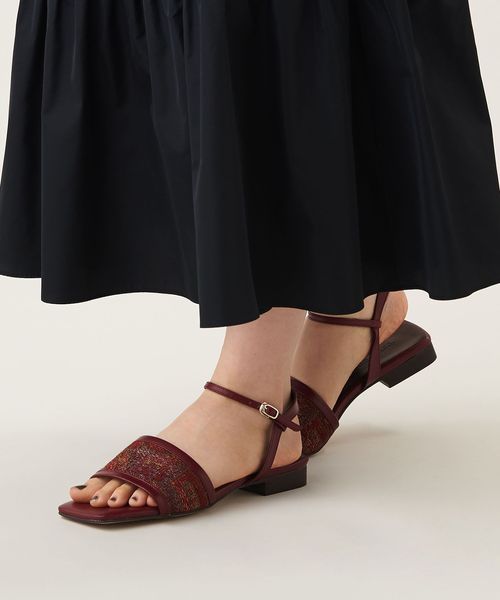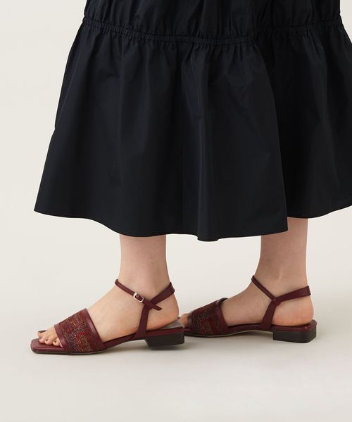 前とかかとの両方をホールドしてくれるアンクルストラップ仕様で、安心感のある履き心地もポイント。