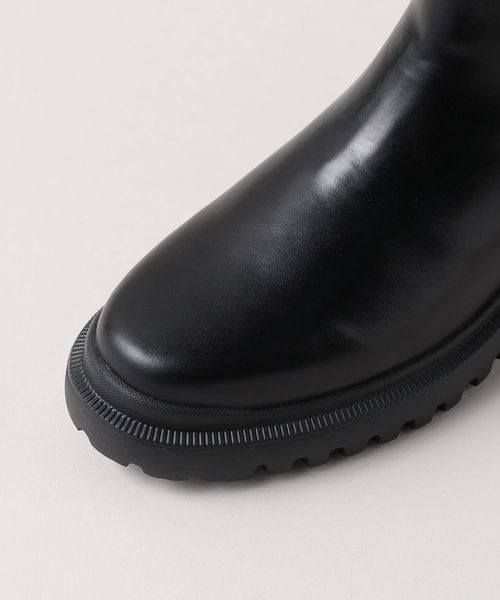 カジュアルに見えがちなサイドゴアブーツは、すっきりとした筒周りのバランスできれいめな雰囲気を演出します。