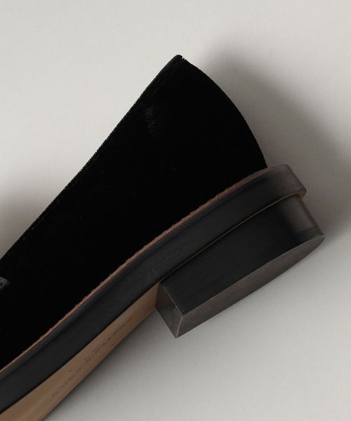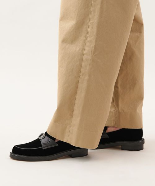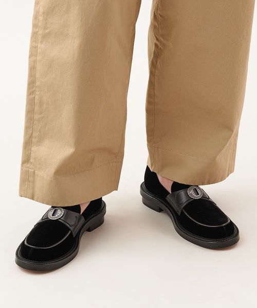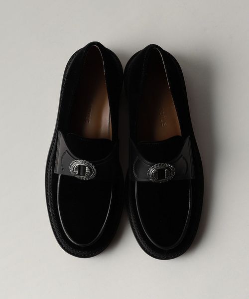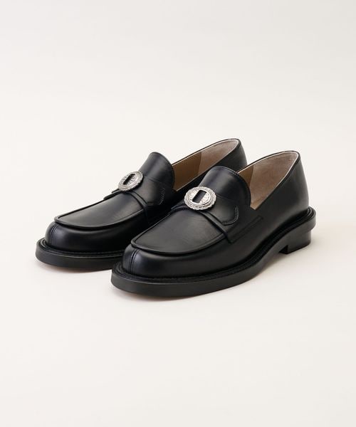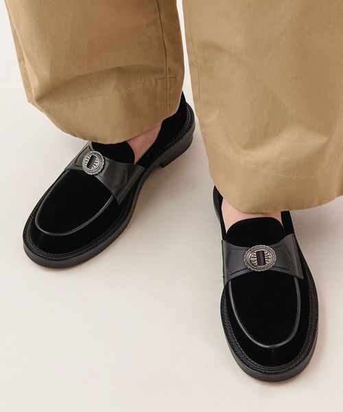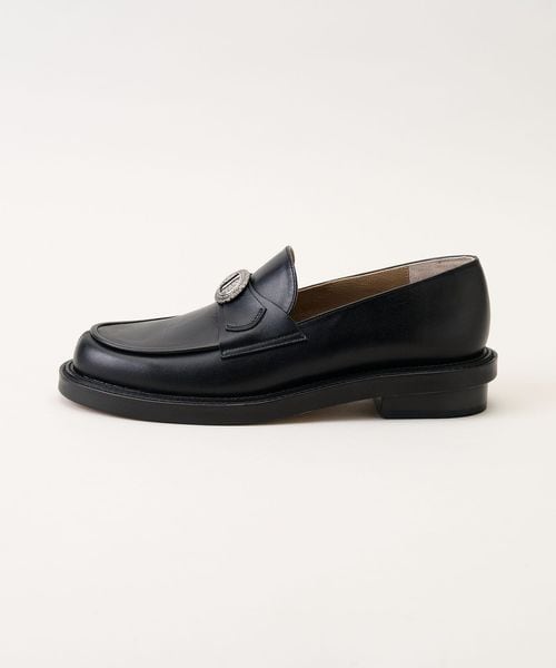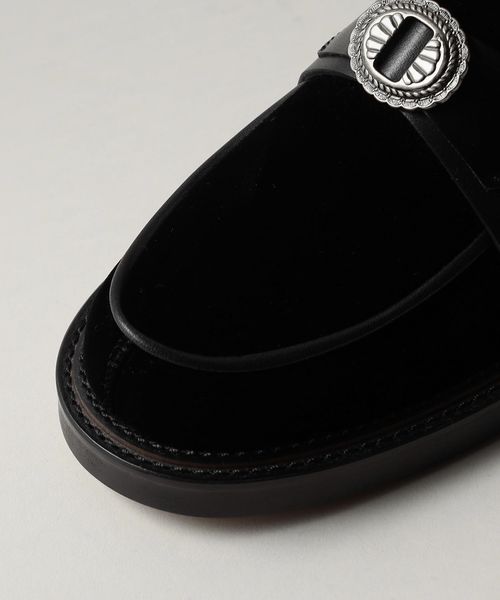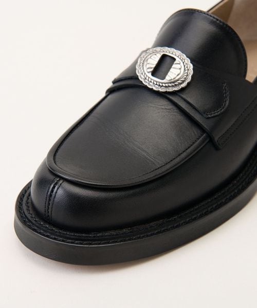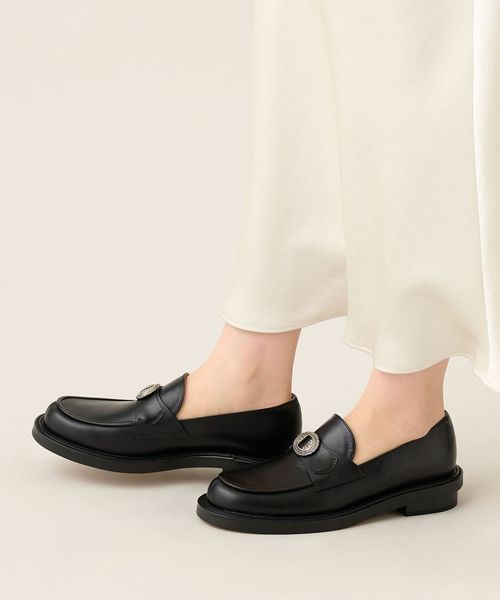 ベルト部分に施したコンチョ飾りが存在感を発揮するローファー。