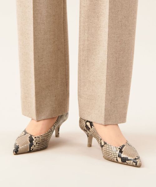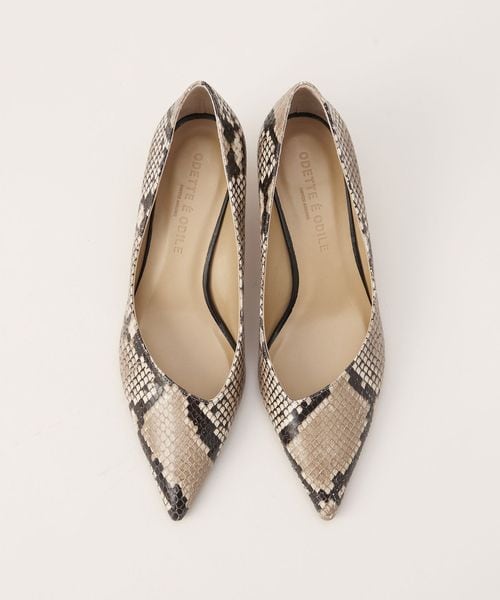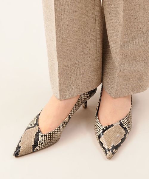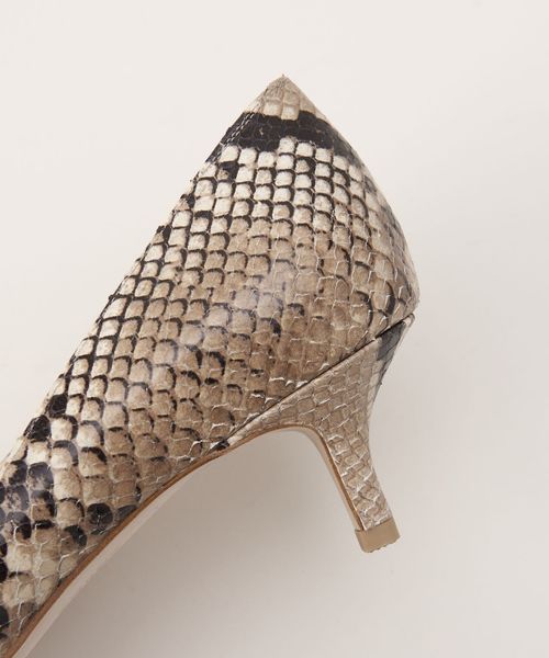 パイソンプリントと型押し加工が施された素材で、品がありつつもリアルな質感が魅力です。