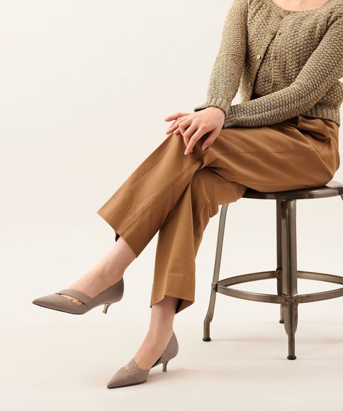太めのベルトをアシンメトリーに配したラインが足元に洗練された抜け感をプラス。
