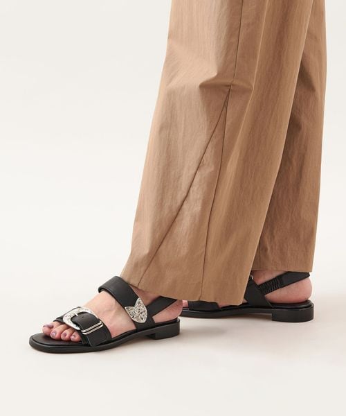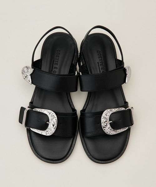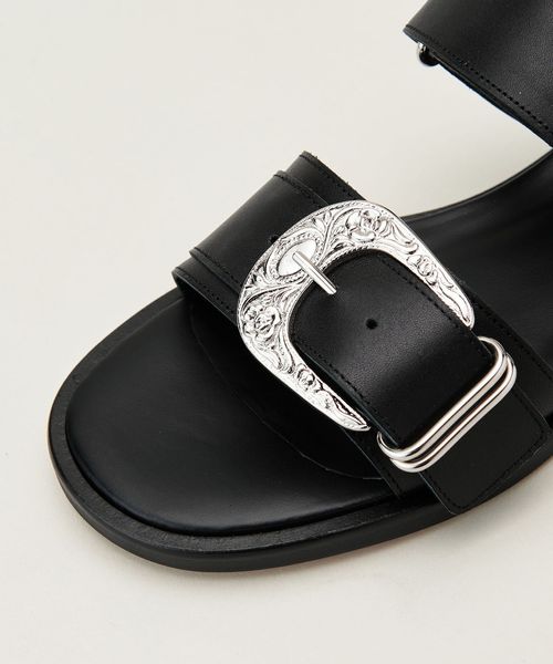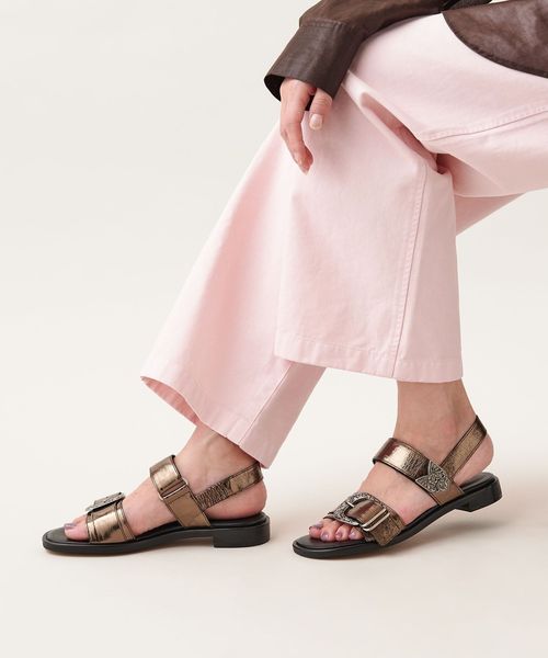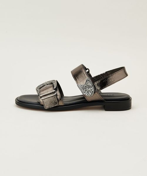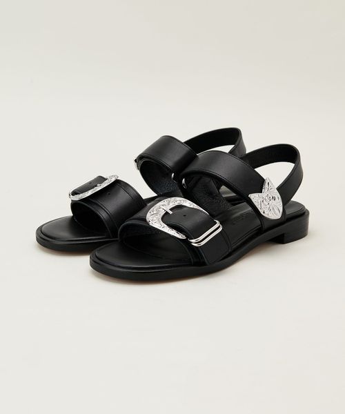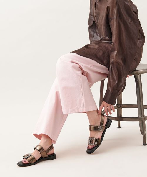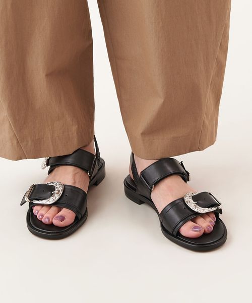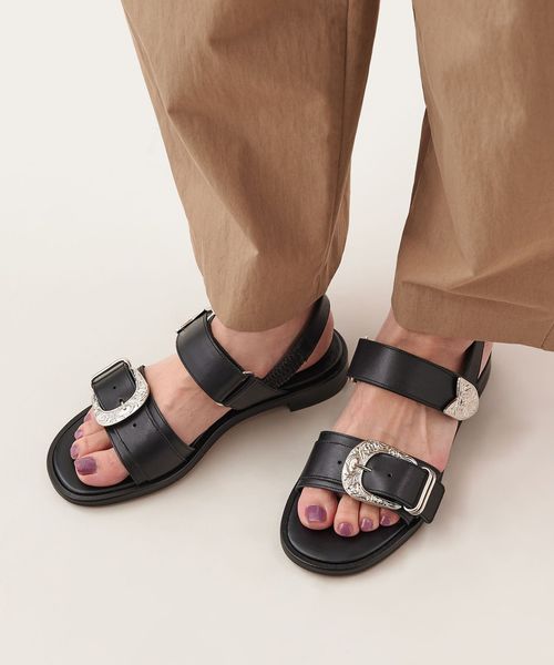 ベルトデザインが映える、モードでウェスタンライクなフラットサンダル