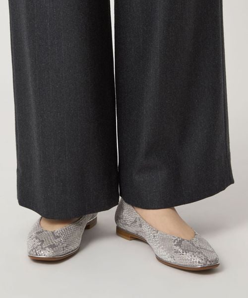 足になじむソフトな履き心地がクセになる一足はアッパーのVカットや底周りに施されたラインなどさりげないデザインが魅力的。