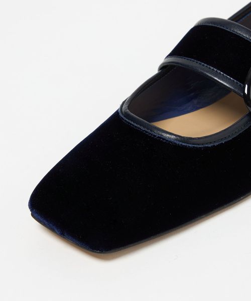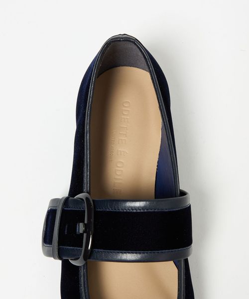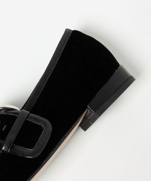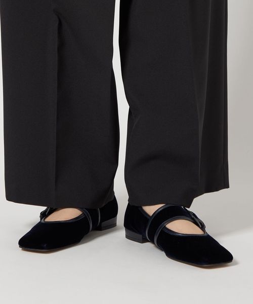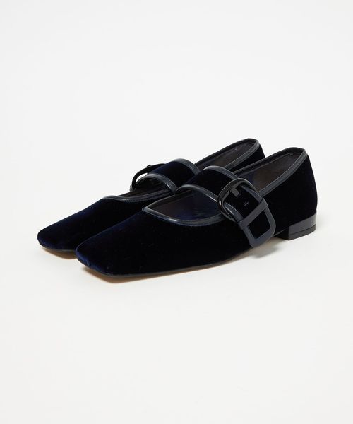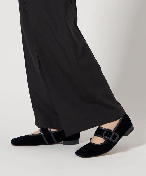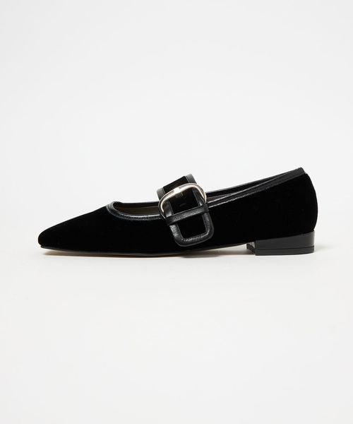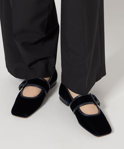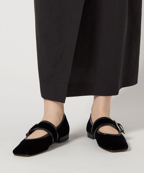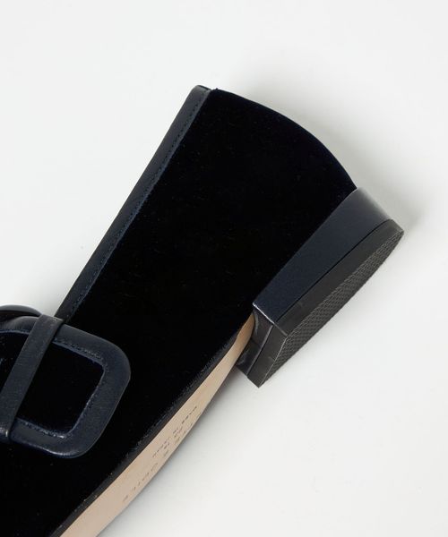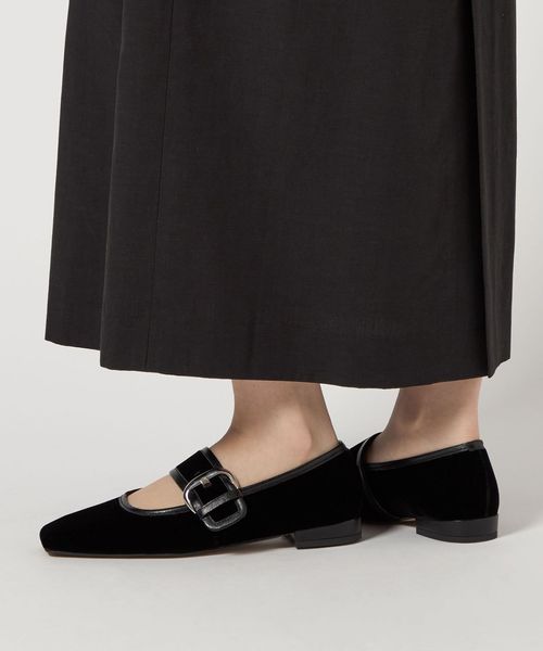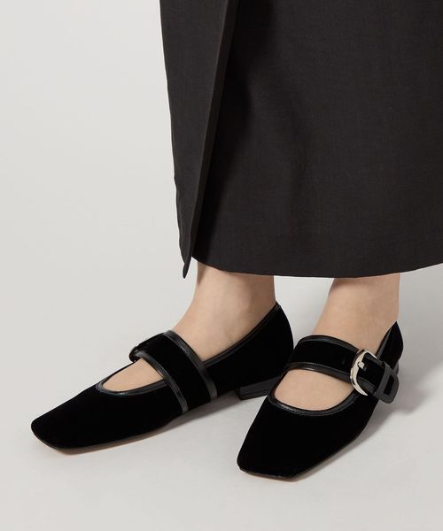 幅広めのスクエアトゥに、存在感のあるベルトデザインを合わせたメリージェーン。