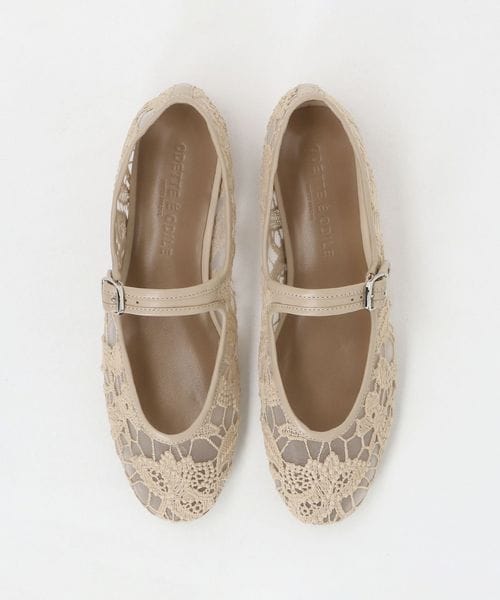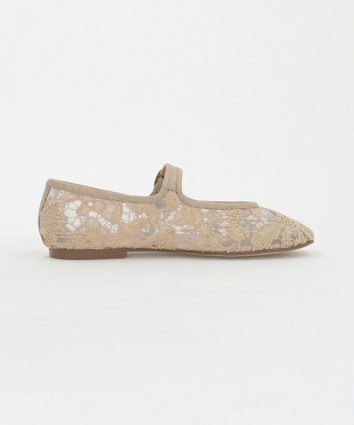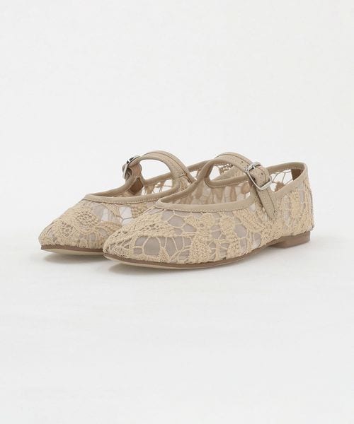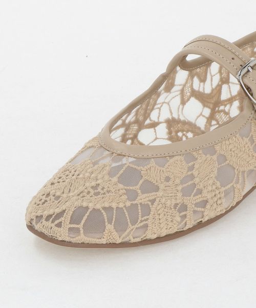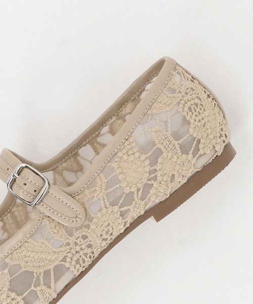 上品な透け感と繊細なレースが女性らしさを演出するメリージェーンフラット