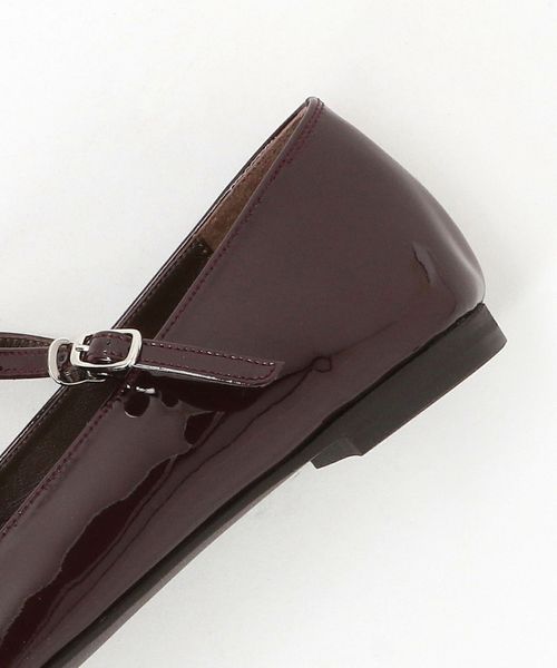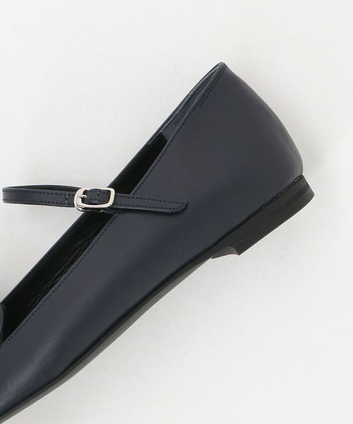 細めのスクエアトゥがアクセントを加えるフラットシューズ