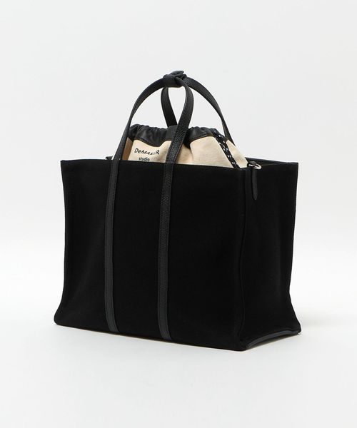 手持ちや付属のショルダーベルトで肩掛けはもちろん、ライニングの巾着は取り出してショルダーバッグとしても使用できるため、その日の気分やスタイルに合わせアレンジを楽しめます。