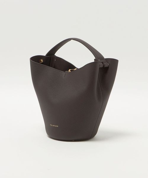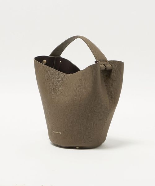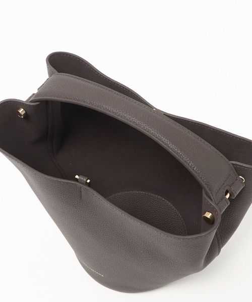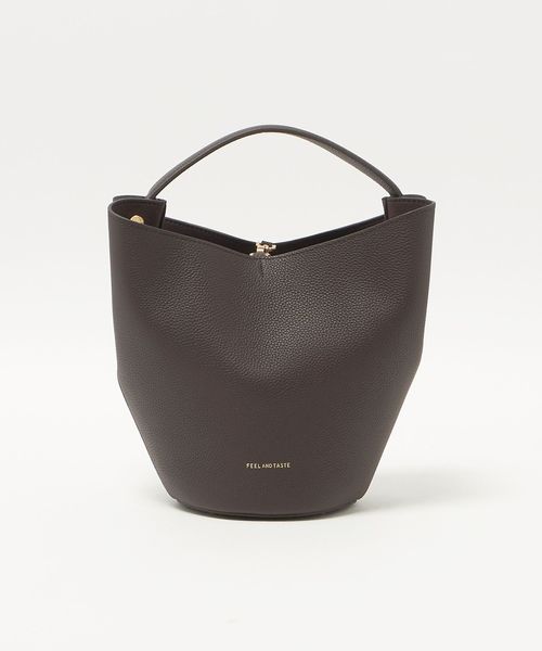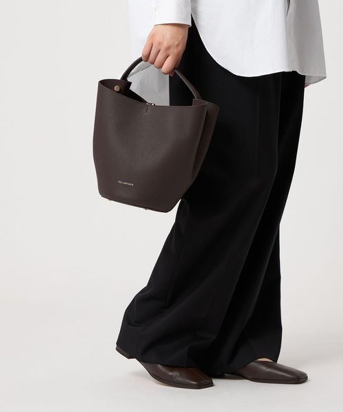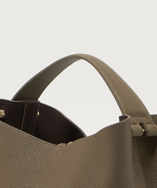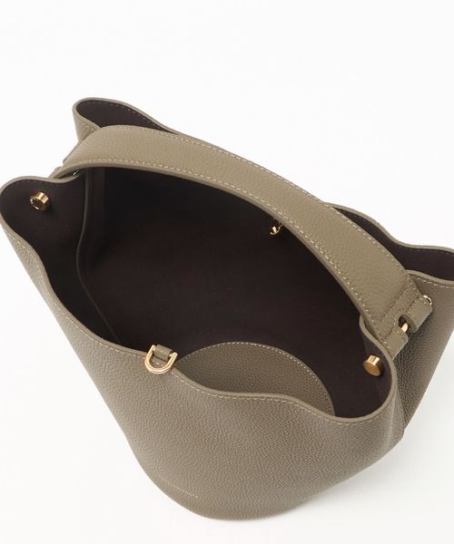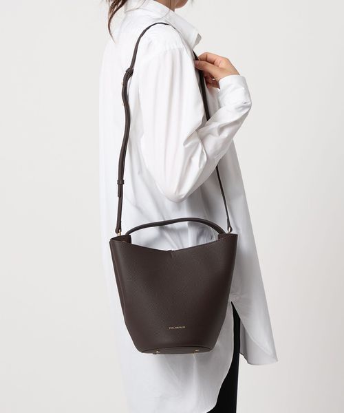 シンプルで洗練されたバケツ型のショルダーバッグ