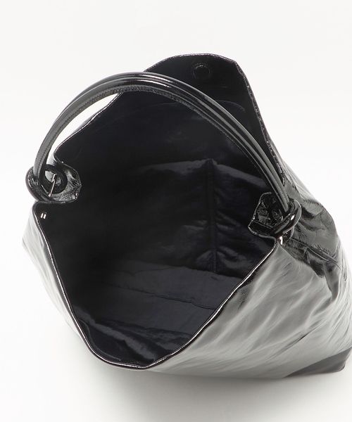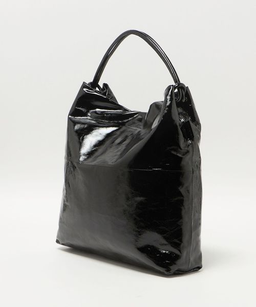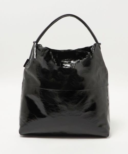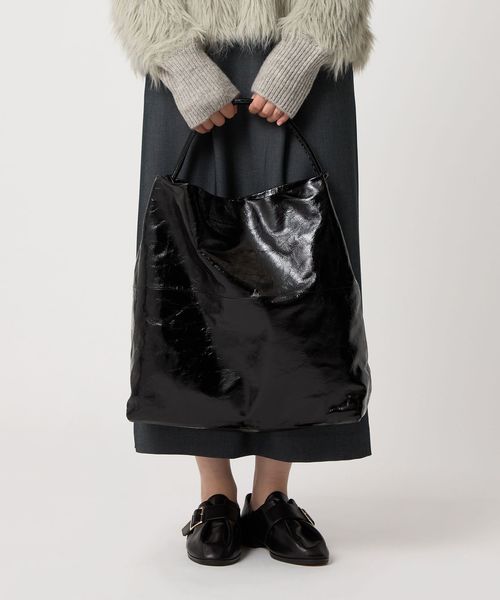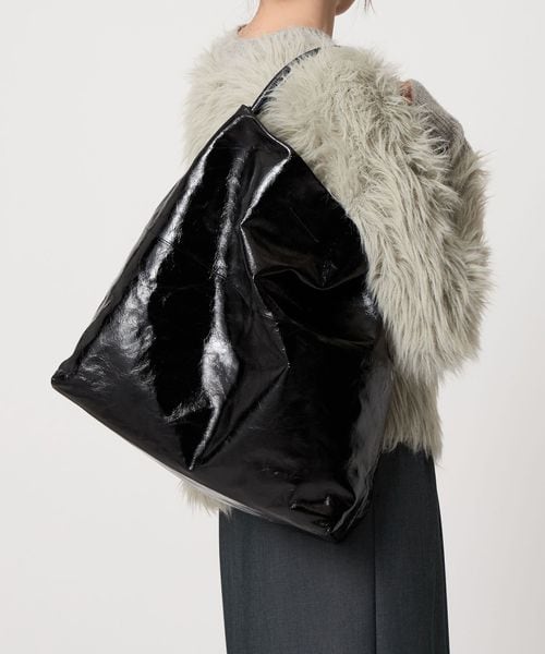 大きめなサイズ感とツヤのある質感が印象的なバッグ