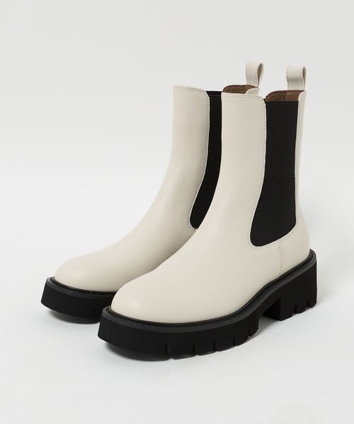5.5cmほどのボリュームソールでカジュアル感を出しつつ、足に沿うすっきりとした筒周りのシルエットで大人っぽい上品さもプラス。