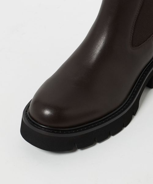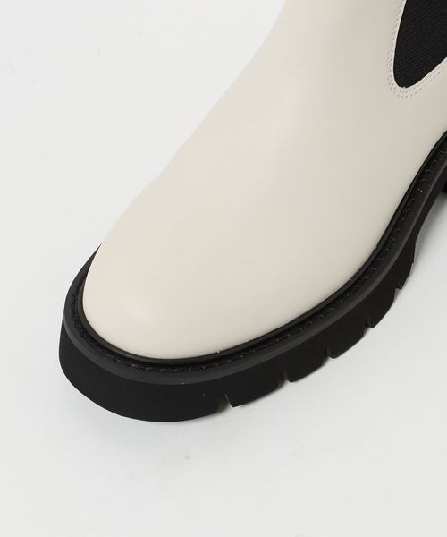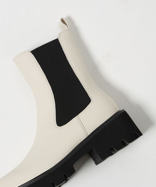 着脱しやすいサイドゴアタイプはファスナー金具を気にせずに履け、ボトムスをインでもアウトでも楽しめるデザイン。