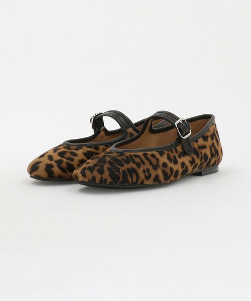 足元に遊び心を添えるレオパード柄のメリージェーンフラット