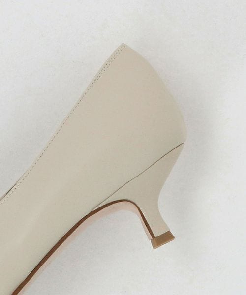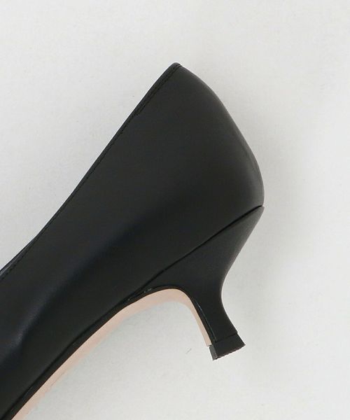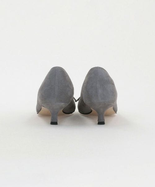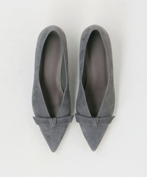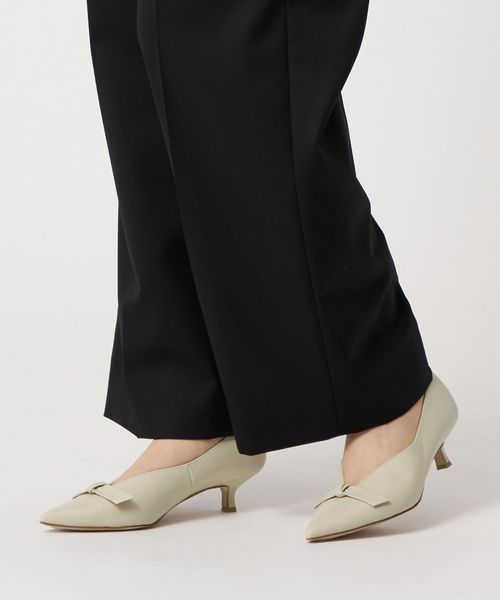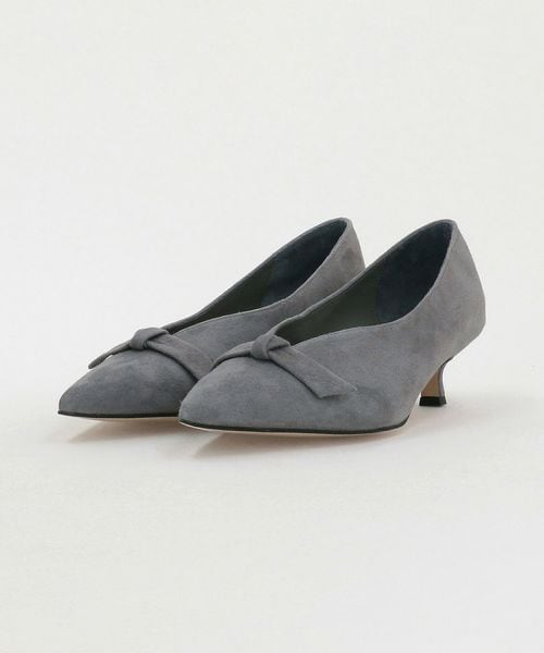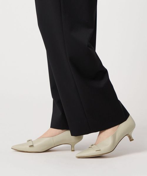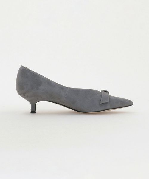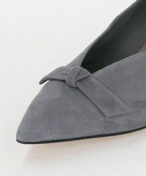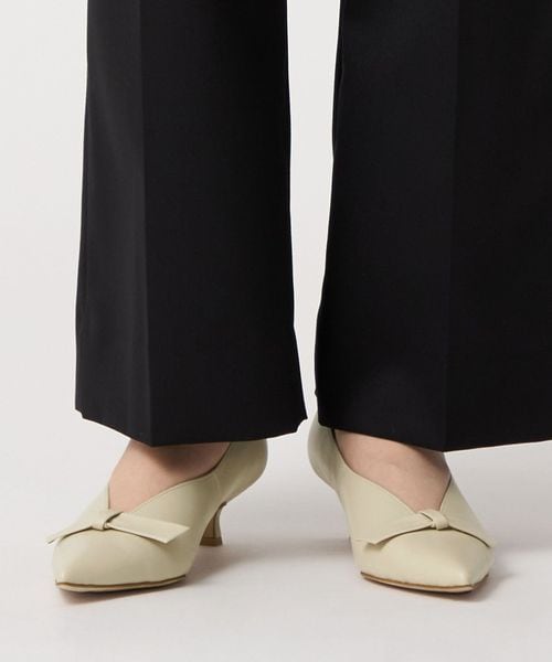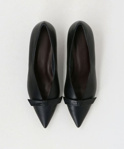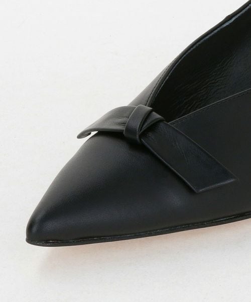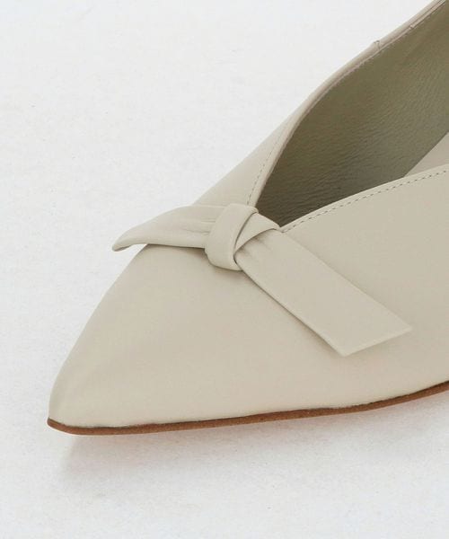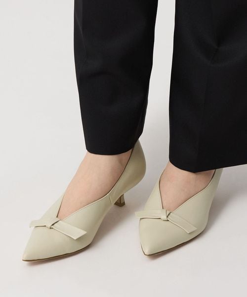 ソフトなVラインのセンターに、三つ折りの革紐でつくったリボンモチーフがアクセントを加えるパンプス。