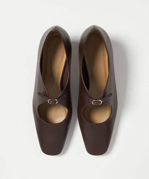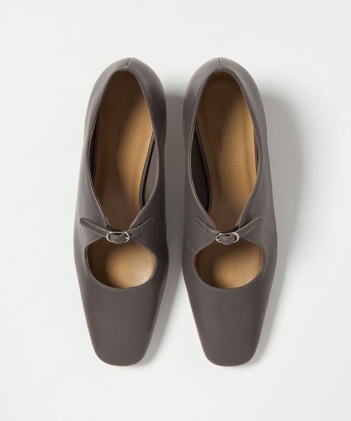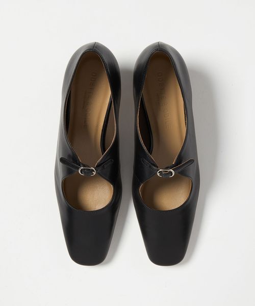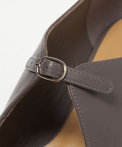 センターの華奢ベルトとシルバーカラーのバックルは足元にさりげないアクセントを加えます。