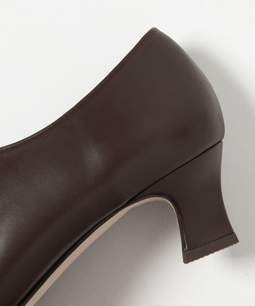 足を包み込むような甲深めデザインが鮮度あるパンプス。