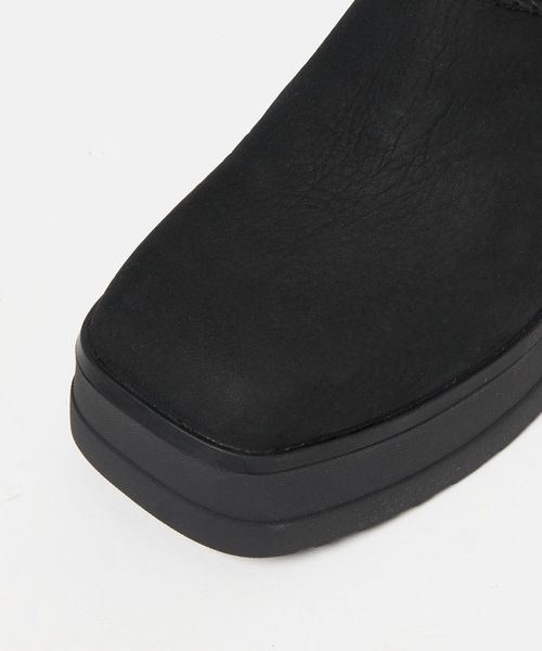 オールブラックのカラーリングやスクエアトゥがファッショナブルな印象ながらも、5cmの厚底デザインがスタイルアップも叶えてくれる嬉しい一足。