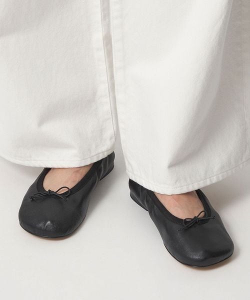 しなやかなシャーリングが上品さをプラスするフラットシューズ