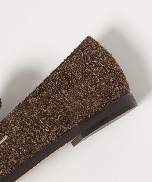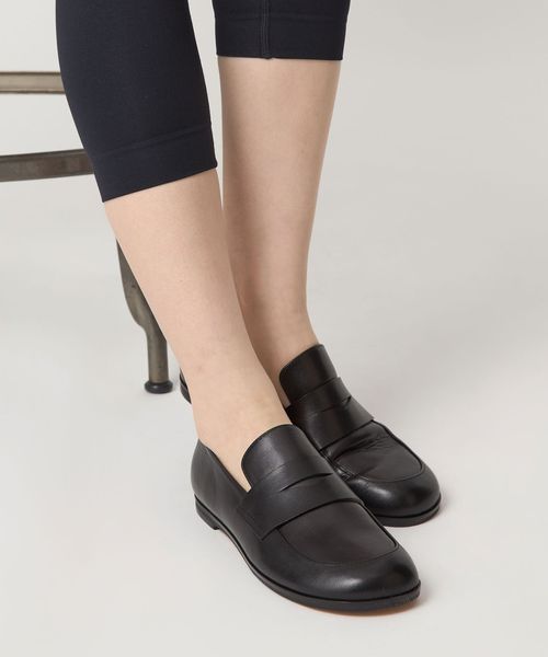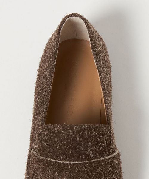 厚みをもたせたオブリークトゥが印象的なローファー。