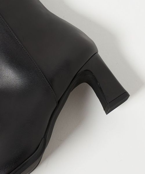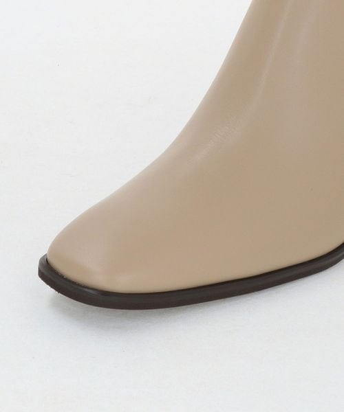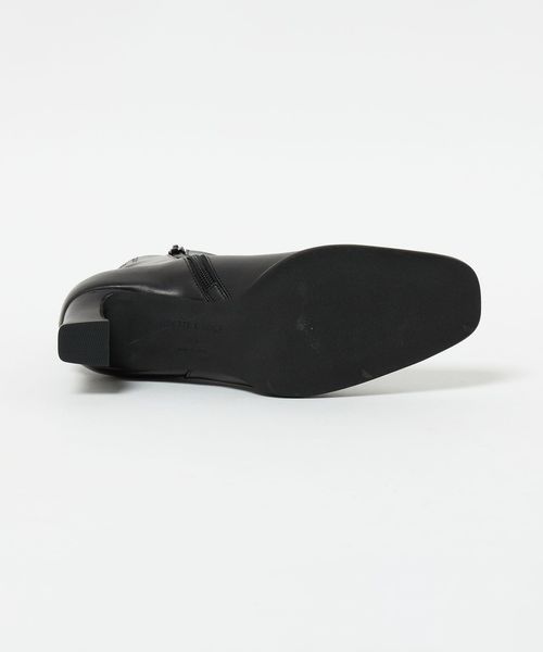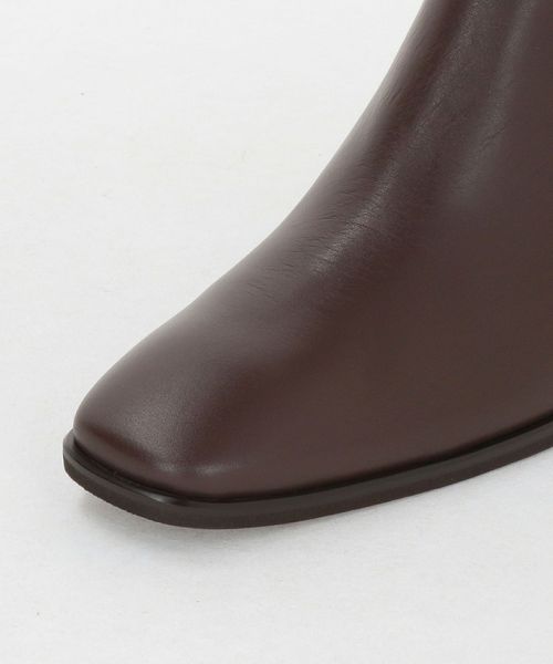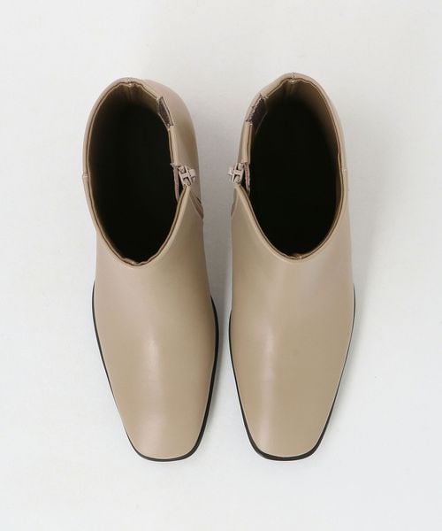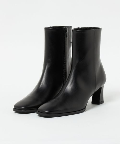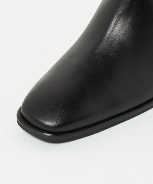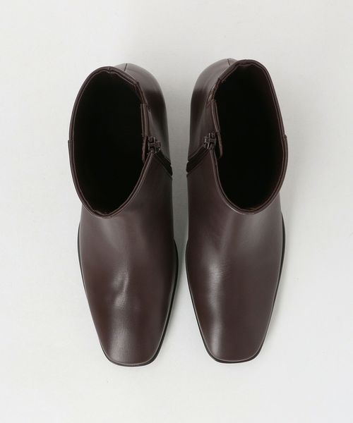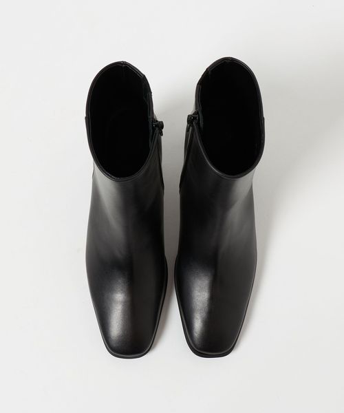 細めの押縁を付けたスクエアのプレーンショートブーツ。