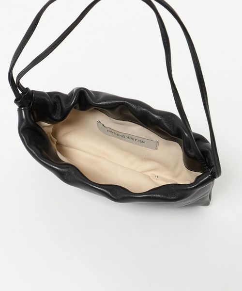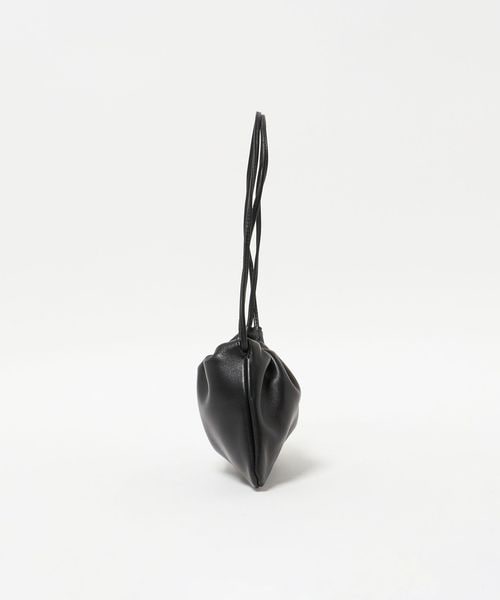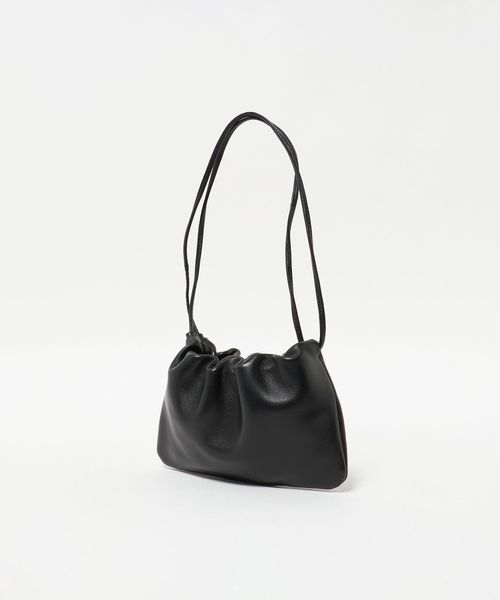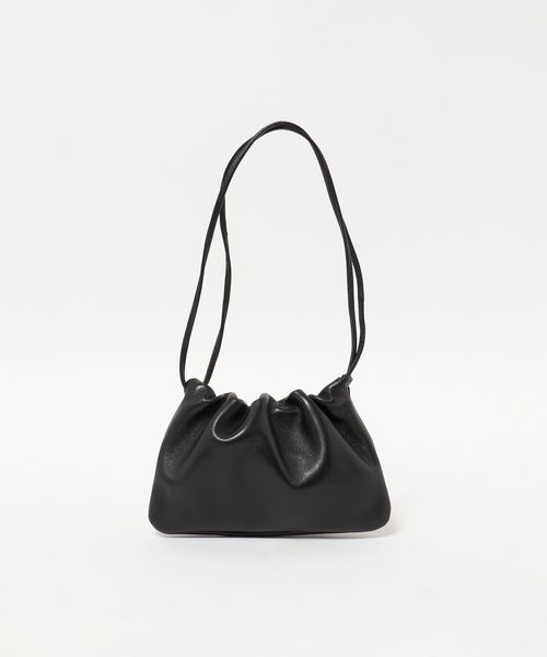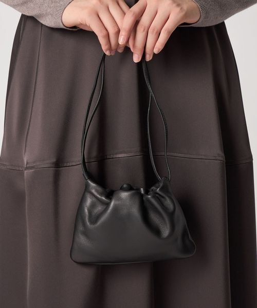 シンプルでクリーンなシルエットの巾着型ショルダーバッグ。