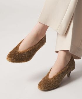 その他1カラーはベージュ系のボア素材にスタック巻きのヒールを合わせ、遊び心をプラス。