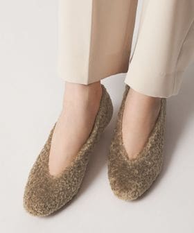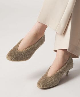 その他1カラーはベージュ系のボア素材にスタック巻きのヒールを合わせ、遊び心をプラス。