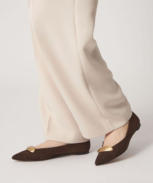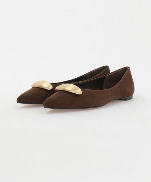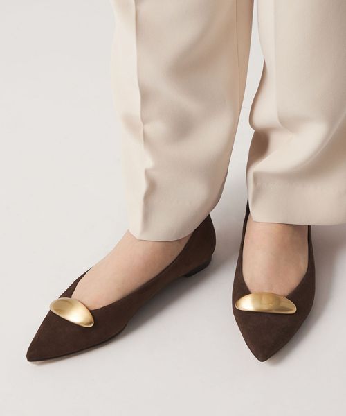 オーバル型のメタルオーナメントが存在感を放ち、足元に個性と上品さをプラス。